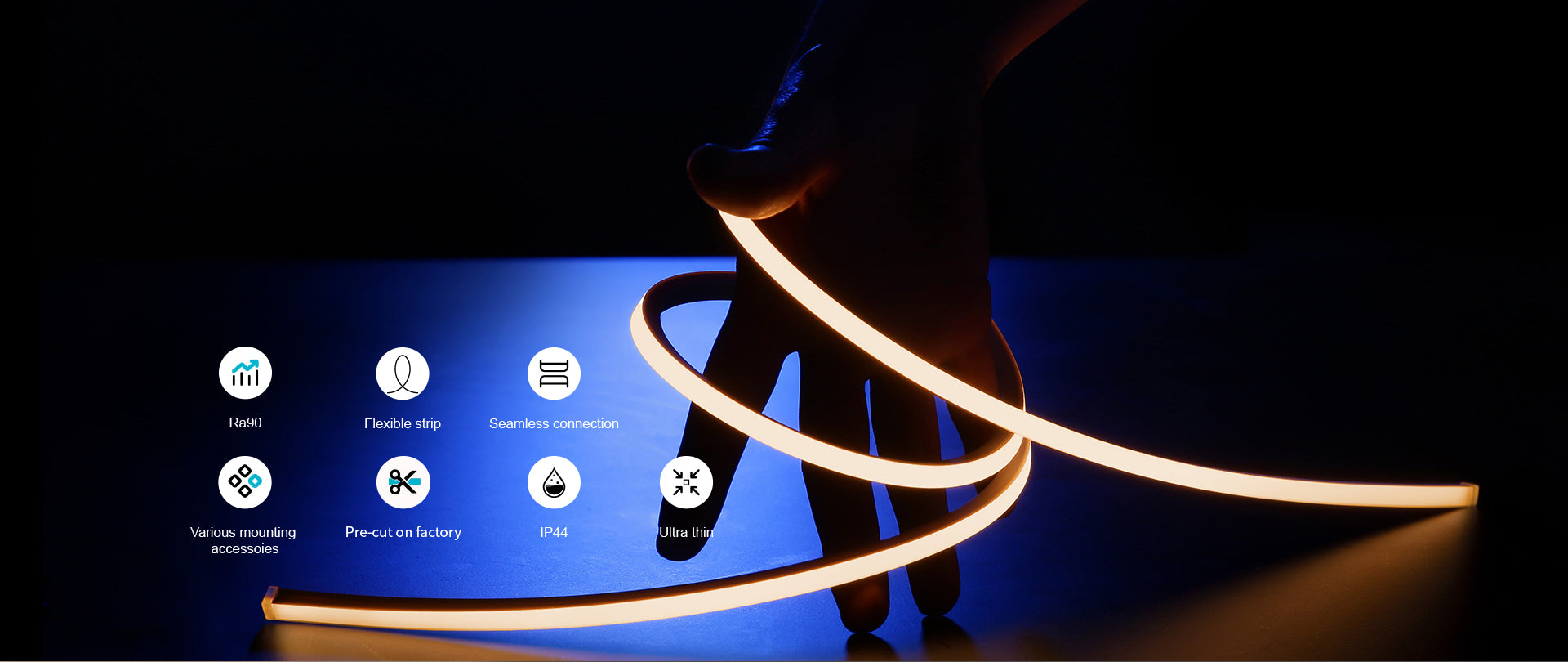 With illuminated width of 16mm and height of 17mm, VIVA Silicone Large 1617 is a IP67 top or side bend strip that comes in CCT and RGBW options. Other than traditional single CCT strips, it offers options of turnable white or warm-dimming. Compared to traditional dotted LED strips, dot-free LED strips are more elegant especially for high reflective surface. Contact K2 Lighting for more LED strip lights information now!